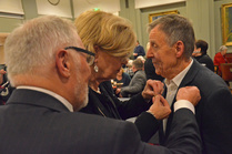Näytelmän väliajalla luovutettiin Yhdistyksemme kultainen ansiomerkki pitkäaikaiselle tilintarkastajallemme, Matti Viljaselle. Nautimme myös kahvit ansiomerkin kunniaksi.